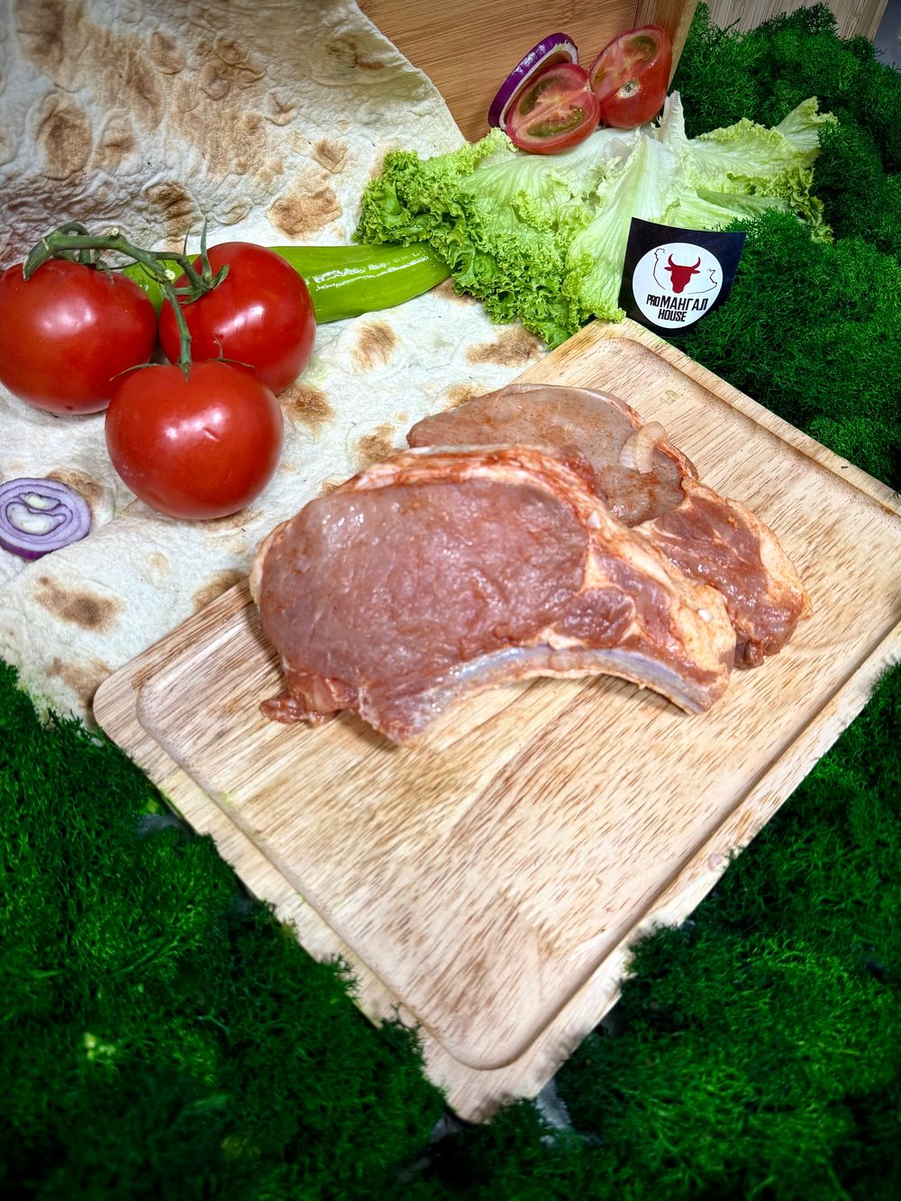 Антрекот свиной свежий, паприка, черный перец, лук